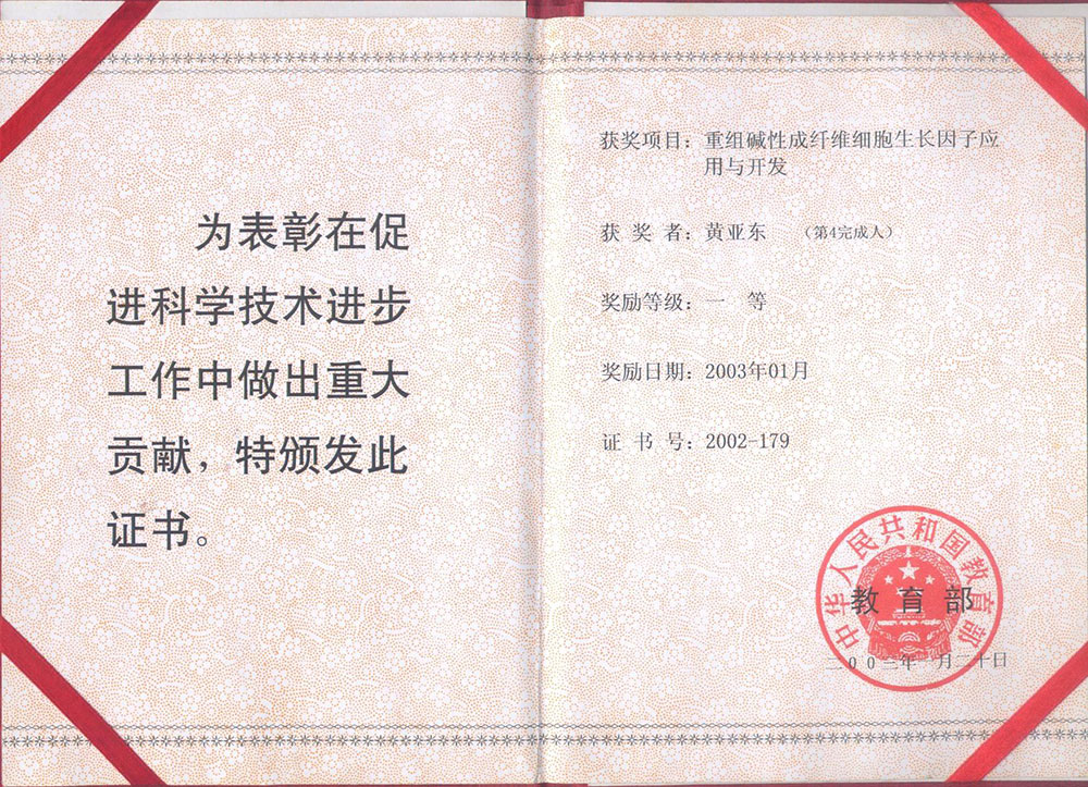 教育部一等獎(jiǎng)-重組堿性成纖維細(xì)胞生長(zhǎng)因子應(yīng)用于開(kāi)發(fā)
