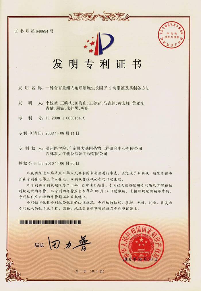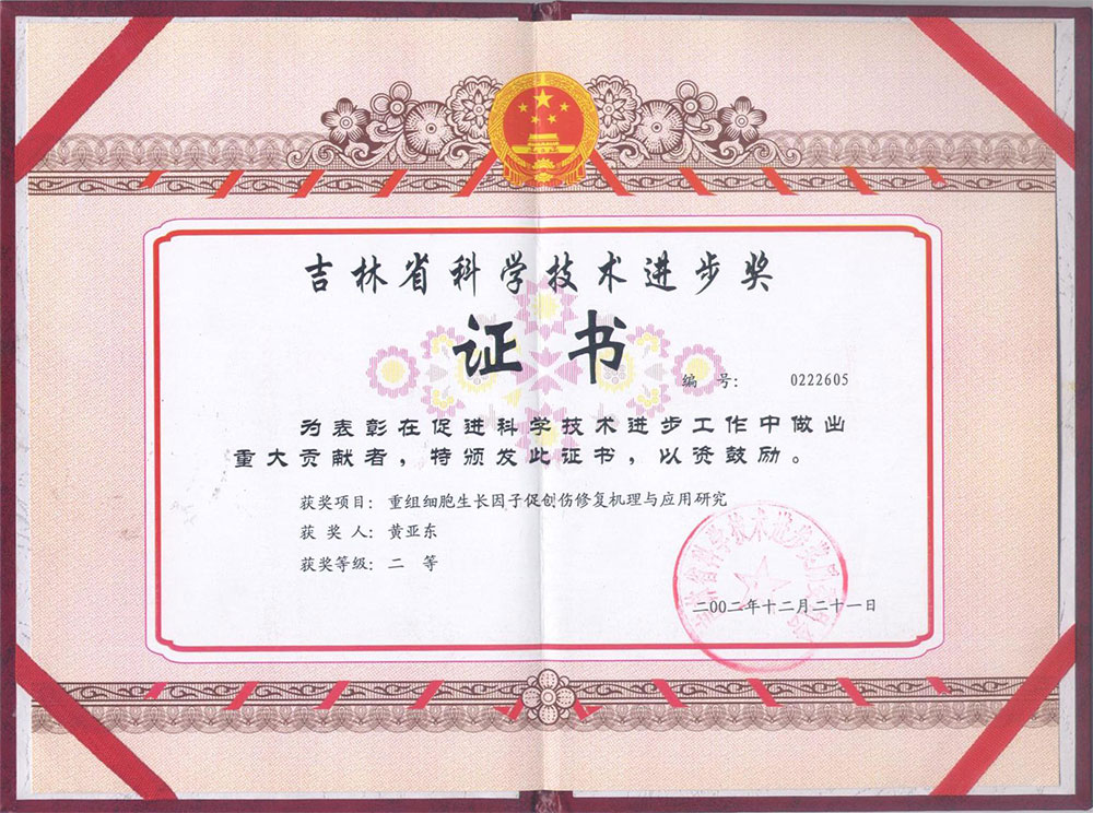 吉林省科學(xué)技術(shù)進(jìn)步獎(jiǎng)二等獎(jiǎng)-重組細(xì)胞生長(zhǎng)因子促創(chuàng)傷修復(fù)機(jī)理與應(yīng)用研究