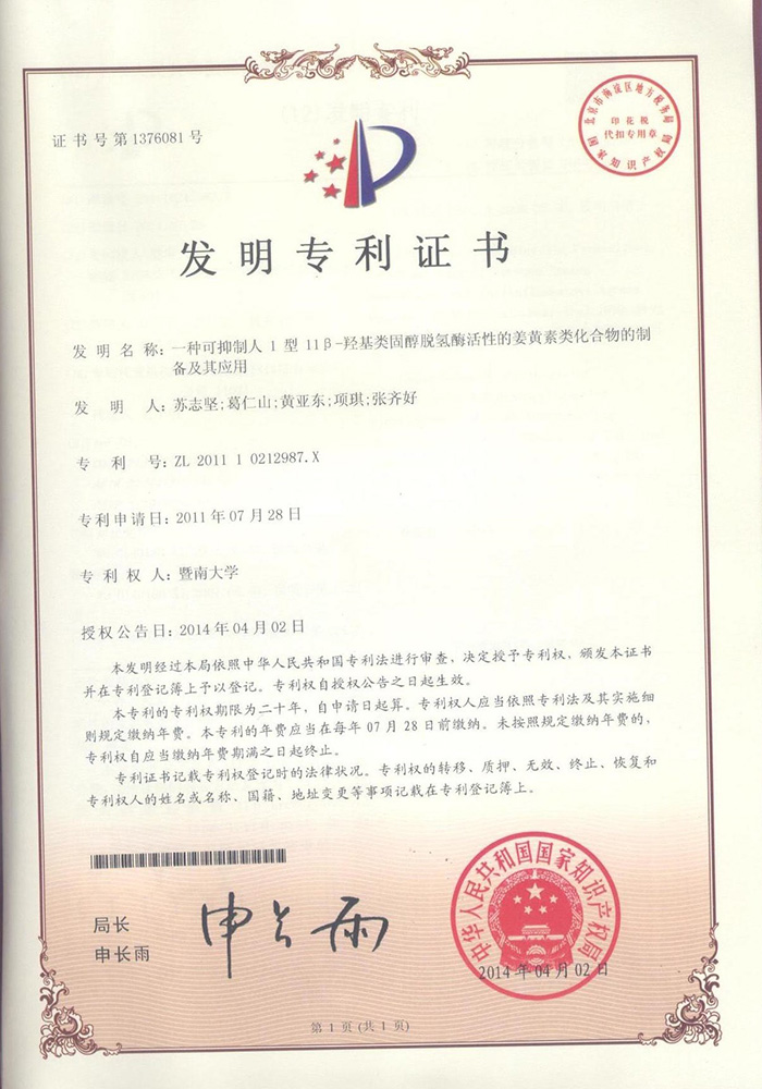 一種可抑制人Ⅰ型11β-羥基類固醇脫氫酶活性的姜黃素類化合物的制備及其應(yīng)用
