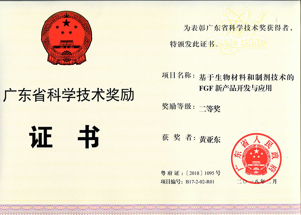 廣東省科技獎(jiǎng)二等獎(jiǎng)-基于生物材料和制劑技術(shù)的FGF新產(chǎn)品開(kāi)發(fā)與應(yīng)用