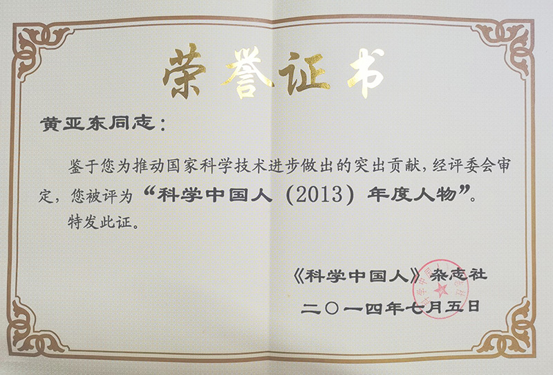 科學(xué)中國(guó)人年度人物榮譽(yù)證書(shū)