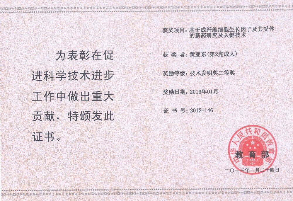 教育部技術(shù)發(fā)明二等獎(jiǎng)-基于成纖維細(xì)胞生長(zhǎng)因子及其受體的新藥研究及關(guān)鍵技術(shù)