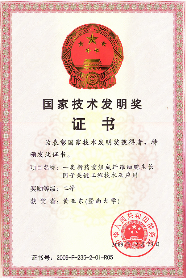 廣東省科學(xué)技術(shù)獎(jiǎng)勵(lì)一等獎(jiǎng)-一類(lèi)新藥重組人酸性成纖維細(xì)胞生長(zhǎng)因子的開(kāi)發(fā)與應(yīng)用